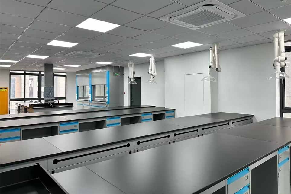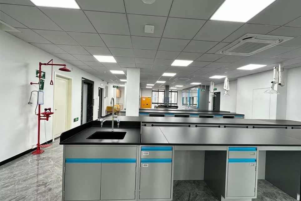 实验操作区:设计有宽敞的实验台,配备了必要的安全设施,如紧急洗眼器和安全淋浴。实验台采用耐酸碱、防腐蚀的材料制成,确保长期使用的稳定性和安全性。